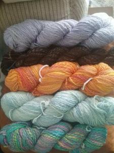 The next picture is all the yarn I’ve spun this year, (well except the orange skein it was a fractal spin I did last year, it’s just pretty :P).