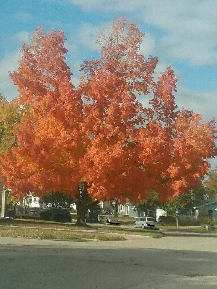 The picture on the right is a large beautiful tree showing it fall foliage. The colors on my phone were so vibrant, however my computer screen doesn’t do it justice, hope your colors show up better than my computer. I love fall, but would love it better if it didn’t mean winter is right around the corner, sigh. Winter is when I dream of living in Hawaii or Florida. They are both very expensive, they both have sharks and they both experience hurricanes, but Hawaii doesn’t have large snakes or alligators, tho they do have volcanoes. Choices, choices, choice. Maybe the very cold weather and snow isn’t quite as bad as I thought, though I still don’t like it :P.