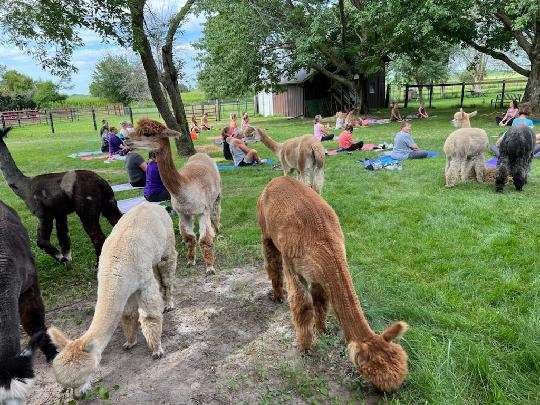 This is the Yoga with the Alpaca on the Alpaca Farm Days picture that was on Sunday morning. My son-in-law was kind enough to send me one he had taken. It’s fun for everyone including the Alpaca, I think some of them were figuring out how to join in with the yoga and others were enjoying a snack!