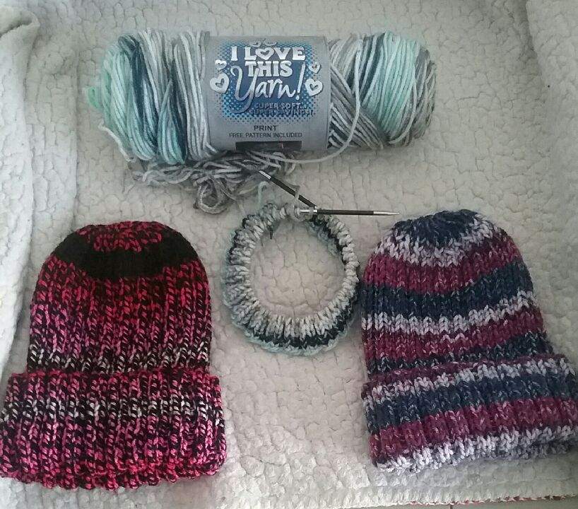 I have knit 2 charity hats and one in progress. When I get 4 or 5 done I will take them to the shelter and start on the next batch. They are a simple 2X2 rib stitch with a fold over brim for extra warmth on the ears. They are easy to make and one of my mindless knits when I don’t have the head space for more complicated things and need the peace myself, and they are helping others.