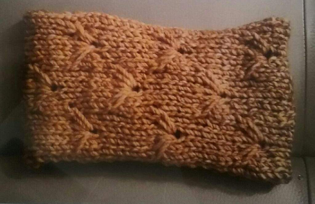 The next 2 pictures are of a test knit that I did. I took a picture of the front and back because the darker front didn’t show the pattern as well as the lighter back (the yarn, Loops and Threads Impressions, is a bulky, slightly fuzzy yarn that fades from dark to light and back again), you might want to keep that in mind if you buy this pattern and make it ;). This is a headband for those that don’t like to wear hats but their ears get cold. The pattern is called Dandelion Headband. It was a fun pattern with an interesting stitch to make the dandelion flowers. You can find the pattern on Ribblr, the designer is Cloud9 Atelier . Ribbler is free but you need to make a account to use it. This is a paid pattern that you can buy, but they also have some free patterns and they have a very interesting online user-active pattern format that I like and my free patterns are on there too. This was a fun knit. I will definitely knit it again.