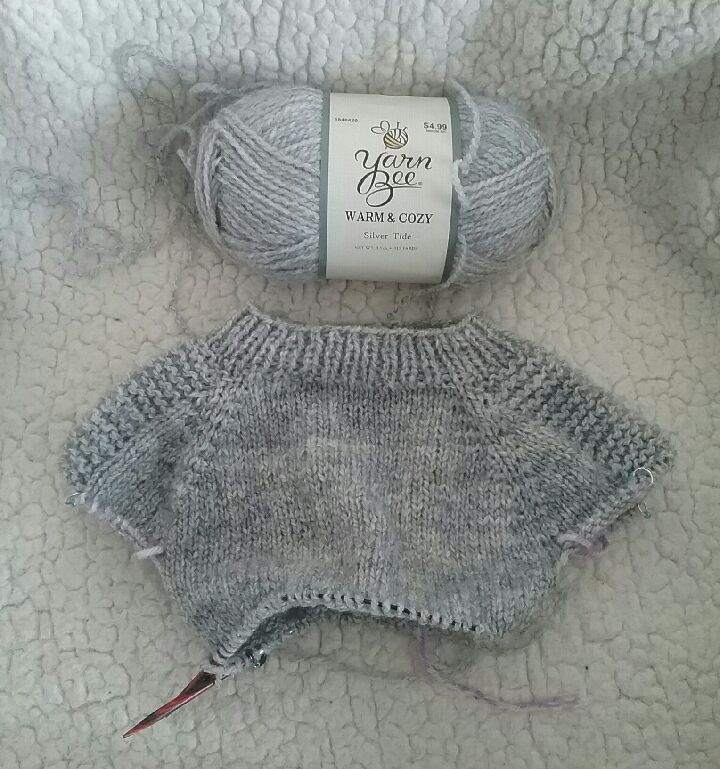 The last picture is another Tin Can Knits Flax baby sweater, a free pattern, you can find the needle sizes I use here on earlier post. I made a change in yarn because I didn’t want to have to mess with the color management of stripes and having to weave in all those ends lol. I’m using Hobby Lobby’s, Yarn Bee, Warm & Cozy, it’s very soft and in this size (6 months to 1 year) one skein might be all I need, but I bought 2 just in case, no sense inviting “Murphy’s Law”, he’s not our friend. It is acrylic, nylon and polyester, medium weight – worsted). I haven’t made one of these baby sweaters in a little bit an forgot how enjoyable they are to knit (the baby sweaters anyway because they don’t take forever :P).