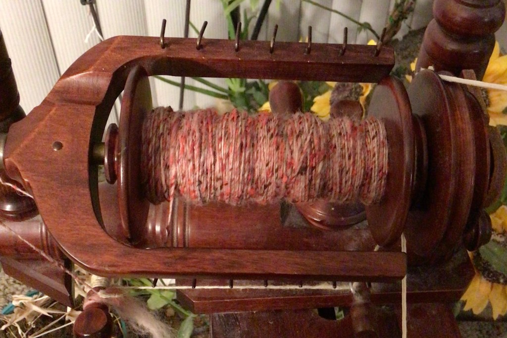 I know this says day 5 and when you see it, but it will be day 6 for the Tour de Fleece, but for the moment that is how it is. If I skip posting a day, it will be right :P. There is progress on my spin even tho I’m sure it doesn’t look like it, I’ll try to pick up the pace. Because it’s quite a bit thicker than I usually spin and I’m only about 1/2 way on the first 2 ozs (each bobbin will be 2 ozs), it makes me wonder if my bobbin will be big enough for the ply of 4 ozs, I’m thinking after plying and washing this might be a heavy worsted or a light bulky yarn. I am loving it tho, it’s a fun fiber to spin, the singles are beautiful, and I’m trying to think of all the things it could become. Depending on how many yards I end up with, maybe a hat or fingerless mitts. I don’t know what the South American wool is, maybe a combination of wools, but it isn’t scratchy, it’s skin soft :).