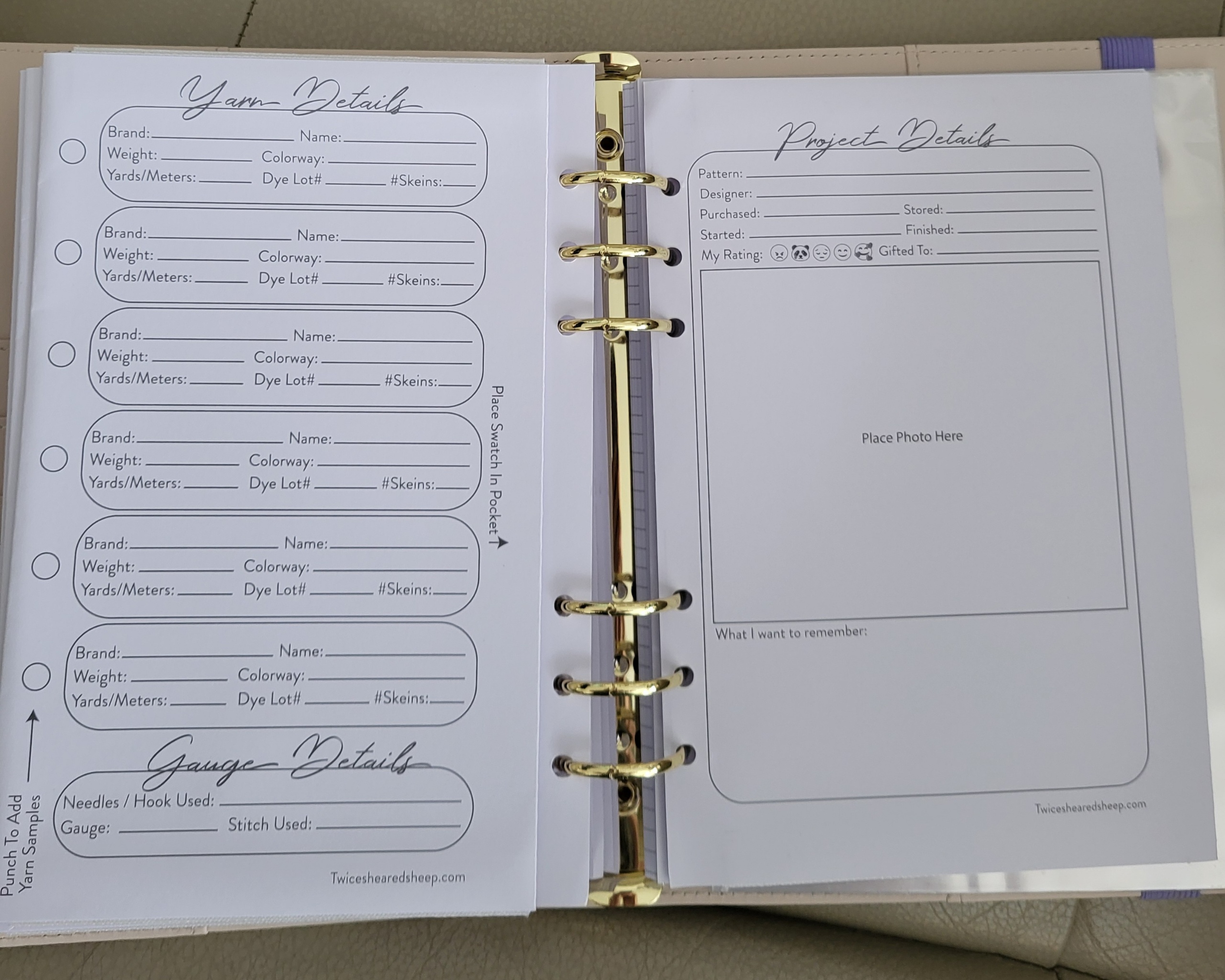 OK! In the first picture is everything that was in the box, then I took pictures to show them a little better. I didn’t show the bag in a separate picture because it showed up well in the main picture (sorry forgot to get a picture of the bell flower stitch markers and they are hard to see in the main picture, you can see them better in the 3rd picture). I was so excited to see these beautiful gifts. The 2nd and 3rd pictures are just more explanation of the items in the box. The yarn is beautiful and so is the round (rather than long) dried flower stitch counter/marker, and the stitch marker tin (it slides open) and the journal are so cool. I have a picture of the outside and inside of the journal, you can put so much information in it! I was so excited to see the blockers, I have wanted (but never justified the money because I’m cheap :P) some of these so I didn’t have to put the millions of straight pins in to block a shawl or scarf etc (yeah I will need another box or two of these). The stickers are cool as well. I hope there will be a tin separator in the next box for the tin, it makes an oblong X in the box to separate the different knitting stitch markers/progress keepers or you can not put one in and put small scissors and a needle in instead. One for each of the bags I use is my eventual plan, they come in a smaller size as well.