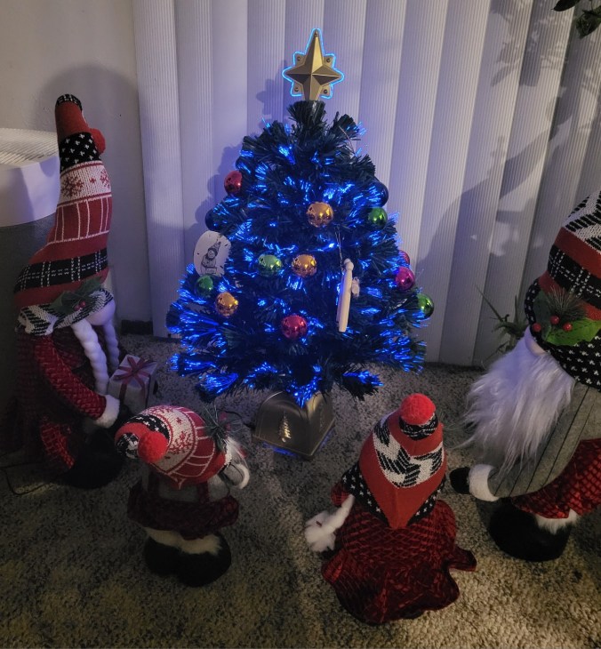 The next 3 pictures are at my son’s farm’s last Saturday with the public for the year (the Saturday before Christmas). He had to postpone from the week before because we had had an ice storm, I took the pictures before people started arriving. The first picture is Libby (the Llama) in a Christmas Top Hat, she was not impressed, hehe. The next 2 pictures are some of the female alpacas at the farm, 2 of them are wearing Christmas hats. They were ok with them. Libby is a bit more head strong, but that is a llama for you :P. They are all loving the cooler temperatures. There were cookies and hot chocolate for the visitors and my son’s mother in law made a wonderful chile con carne, for those of us working at the farm, for lunch, soooo good!!! She promised me the recipe.