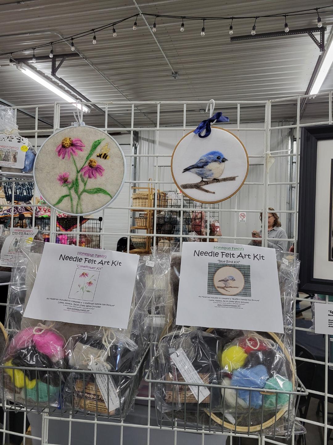 This group is some of the pictures from the Fiber Festival of different vendors. The first one is my favorite goat’s milk soap and lotion maker, love her stuff!! There was so much yarn!! The 3rd picture is some wool needle felted pictures. I thought the Child’s sweater with the sheep was so cute. The 5th picture is of some beautiful batts made from Haunui Wool that comes from New Zealand, and oh my it’s so soft. I think he said New Zealand was the only place you could get that wool. I was going to buy the black batts with some colorful sari silk blended in at the top of the middle bin, but I waited too long and it was gone when I went to buy it. I will have to order it. The 6th picture was a friendly vendor who posed for a picture for me :). The next two pictures are a hand made and designed quilt from one of the 2 Guys Yarn Company and their card because the beautiful quilt deserved to have the creator known.