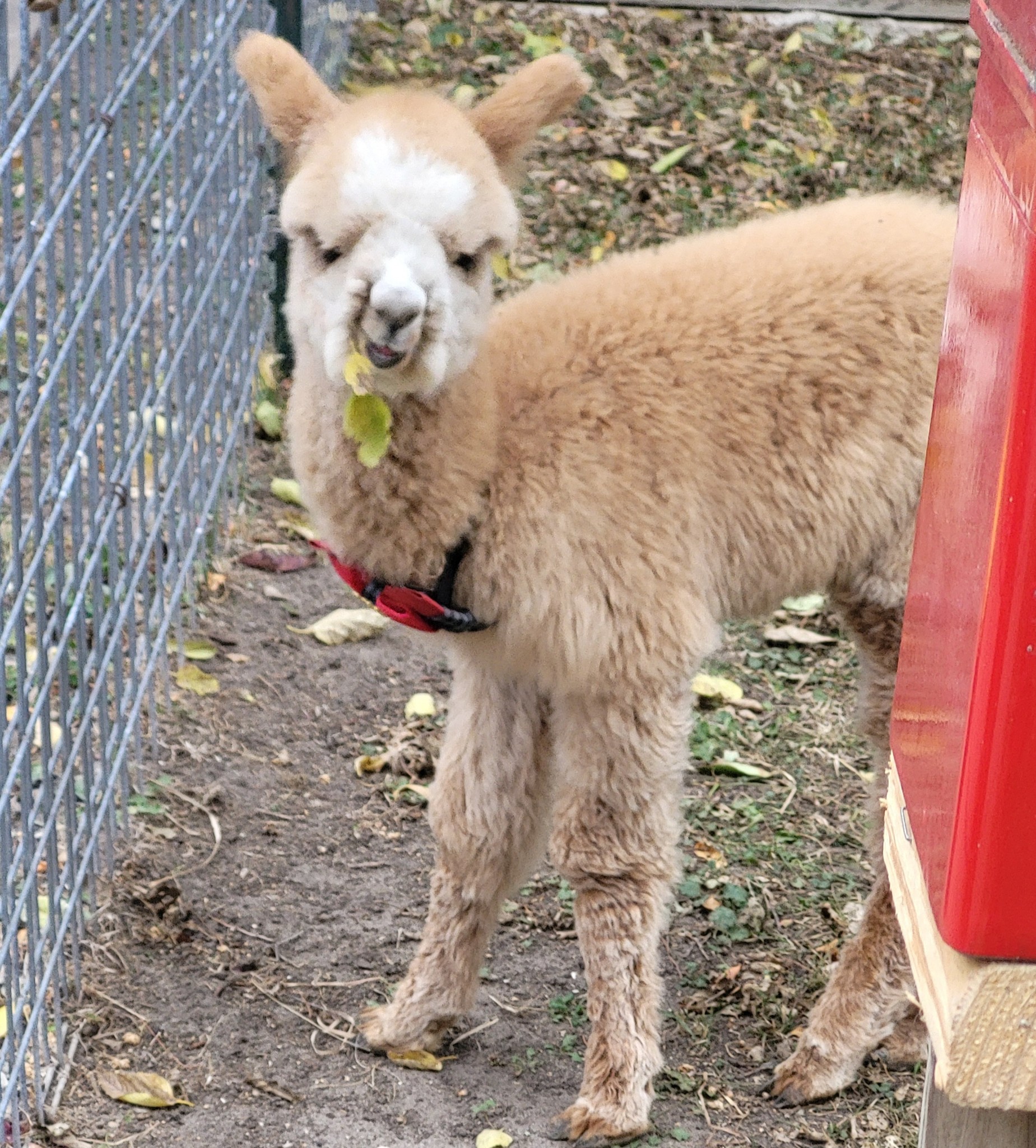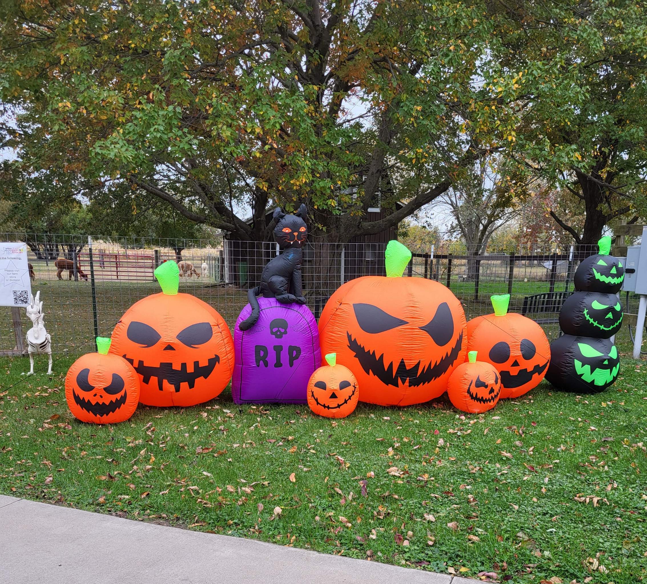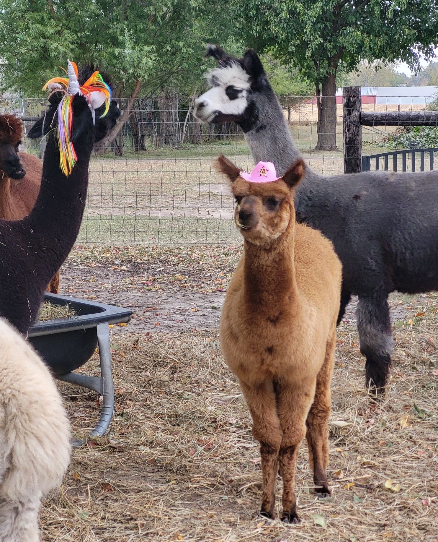 This was the Halloween celebration at the farm this past Saturday :). The first two pictures are some of his decorations, then there are several pictures of the alpacas wearing costumes, lol, some of them had trouble leaving them on! You can see the male behind the fence with a bow tie and little Apollo also has a tie on, some of the females were wearing hats. Libby the llama said, nope! They will be decked out at Christmas too :).