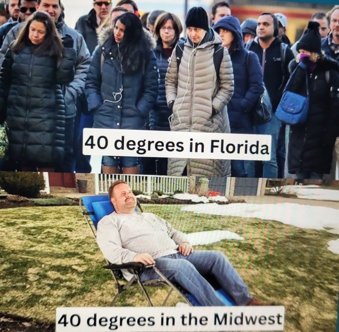 Ok, last poke at the south and our crazy weather this winter :). I’m laughing because this is true :P, we were at 36F today and I went to church wearing a sweater instead of a coat, it’s Spring!!