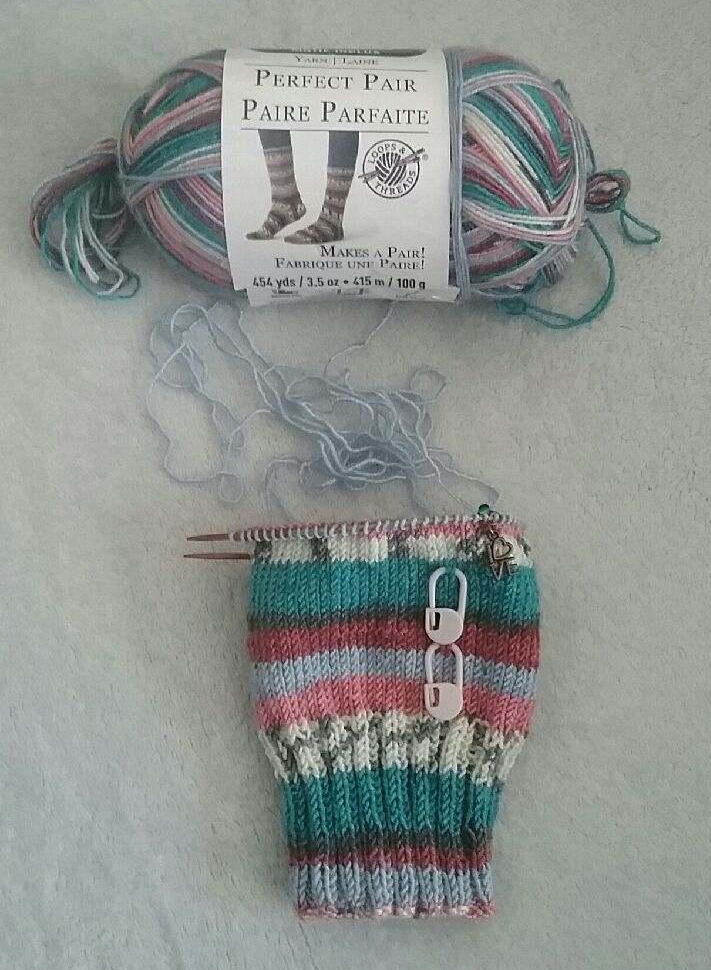 Ok, I finished the first sock in the new yarn. Still larger than I hoped for but a little smaller than the last one. I got all the colors in the one sock lol, but the color changes are short so it all works out, and looks like I won’t have to do too much yarn management to start the 2nd sock in about the same place. I did a kitchner toe on this one instead of just pulling the stitches together as per the pattern, because I didn’t like the original toe. This one looks so much nicer and rounded :).
