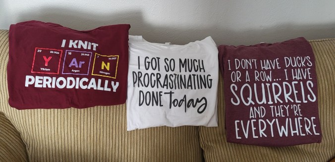 I thought I would lighten the mood with the 3 shirts I bought over the last 6 weeks. Needed new shirts and thought it would be fun to wear shirts that made me laugh or smile. Added bonus it makes others laugh or smile too!!